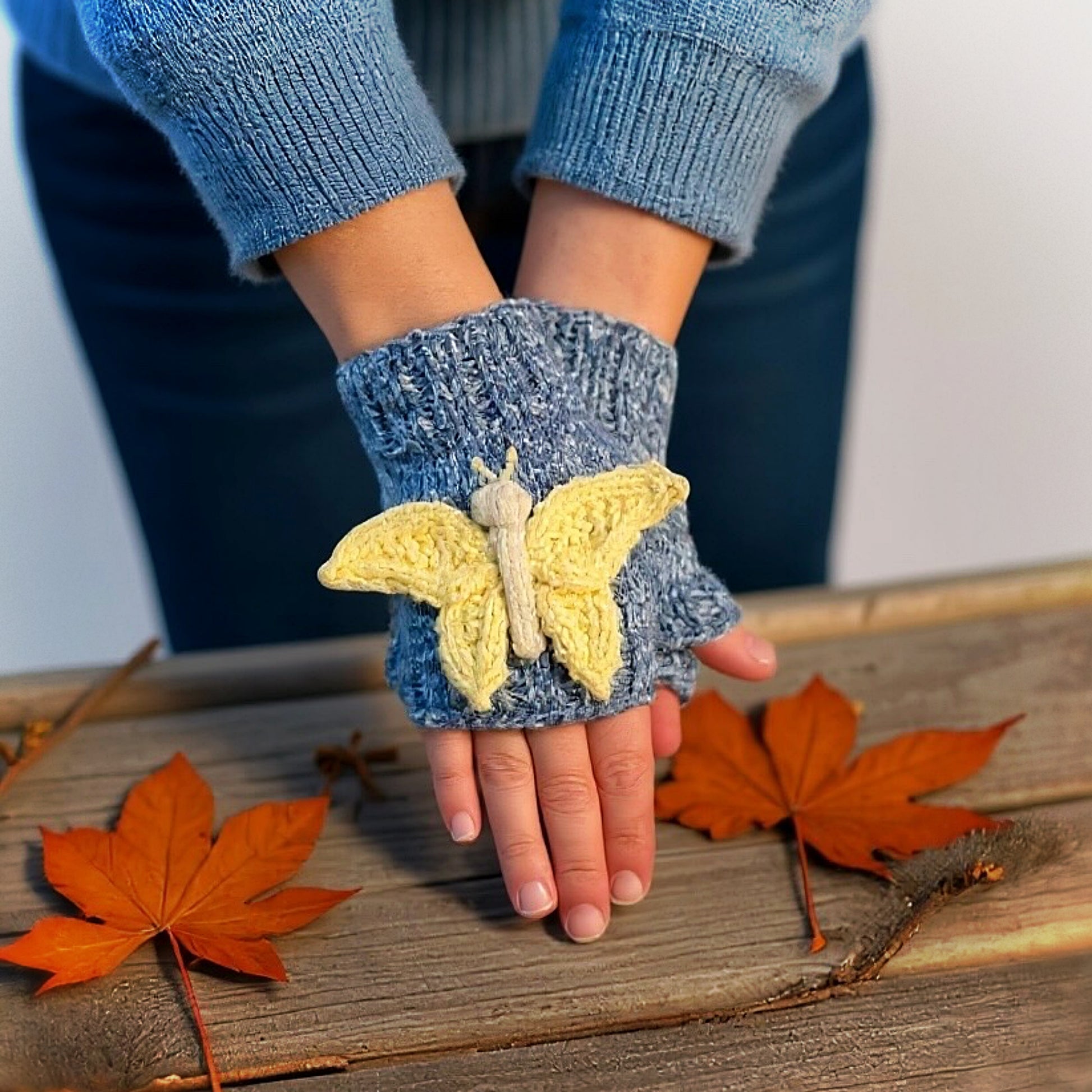 The butterfly’s body is knit directly into the glove, while the wings are made separately and sewn on for a stunning 3D effect. The pattern includes clear instructions, step-by-step photos, and video links to guide you through the trickier parts of the project.