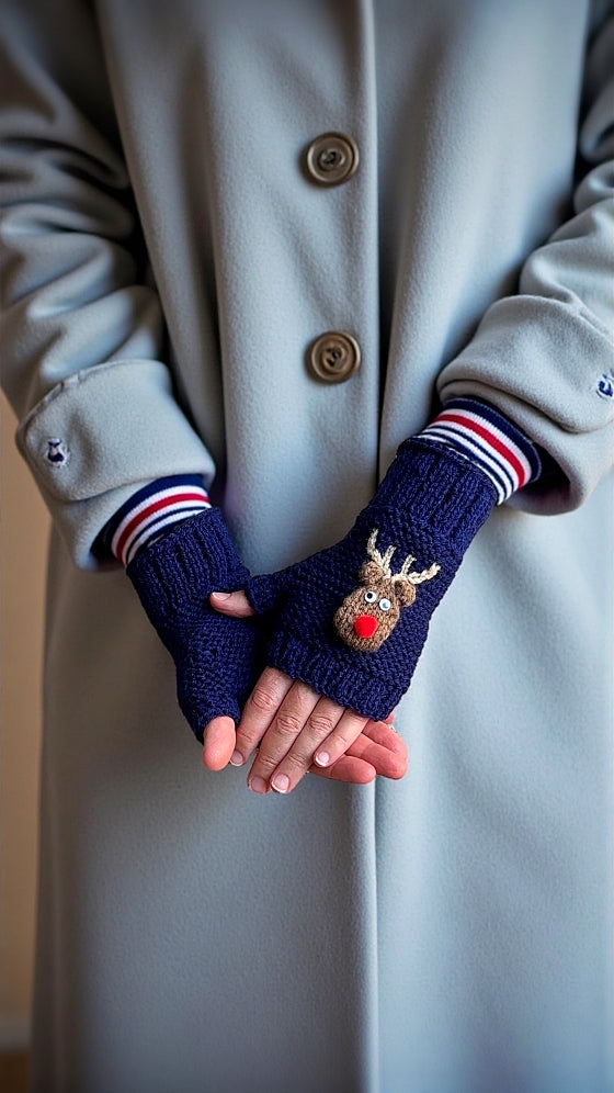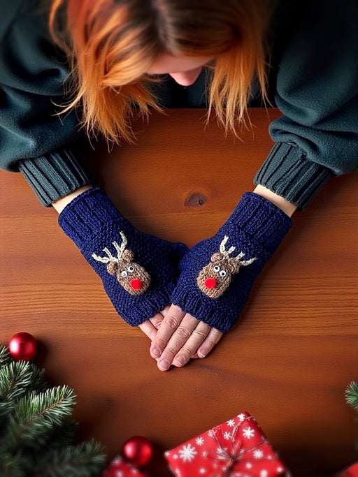 This cozy holiday knitting pattern is a fun way to create festive fingerless gloves that make thoughtful handmade gifts, stocking stuffers, or a cheerful winter project just for yourself. Designed in adult sizes, the gloves balance practical warmth with a playful reindeer motif that captures the holiday spirit.